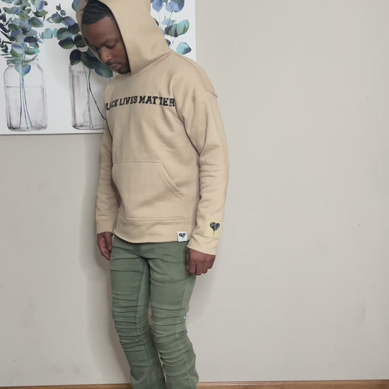 Clothing Details: “Black lives matter” on front of hoodie , “ Justice “ is place on the back of hoodie under the hood also hands are on the back breaking apart some cuff symbolizing blacks breaking free and getting justice. We all know this didn’t come easy it was a lot of work.